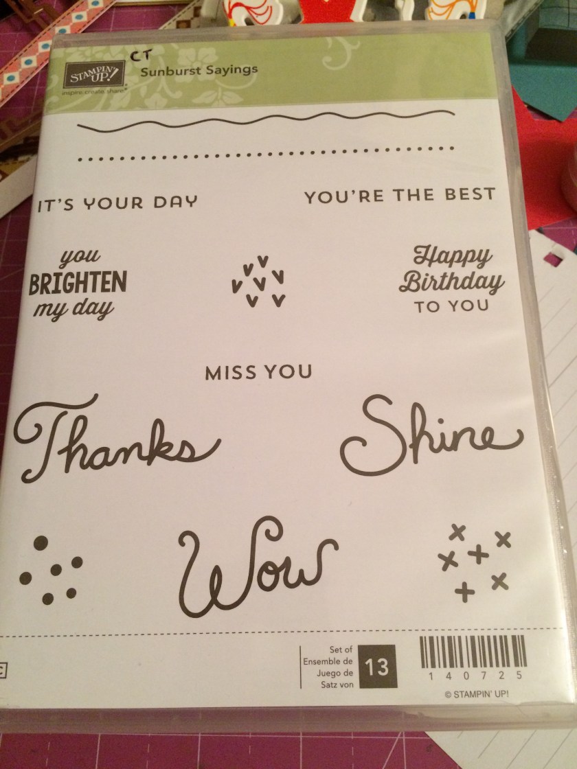 The sentiments were the easiest part. Finally, something going right! I stamped four different ones and didn’t mess up at all, even with my cloudy thinking and growling stomach. So that tells me I’ve actually improved on my stamping. Practice makes perfect! I used SU Basic Gray Archival ink and the SU Sunburst Sayings stamp set for the “It’s your day” stamp inside the stitched wonky square Sizzix die journaling box in the “Frames” strip of three dies, adding in the red color there and hoping the ink would be dark enough to cover it. It worked! All that was left was a number on the balloon and a metal photo holder with brad for decoration.