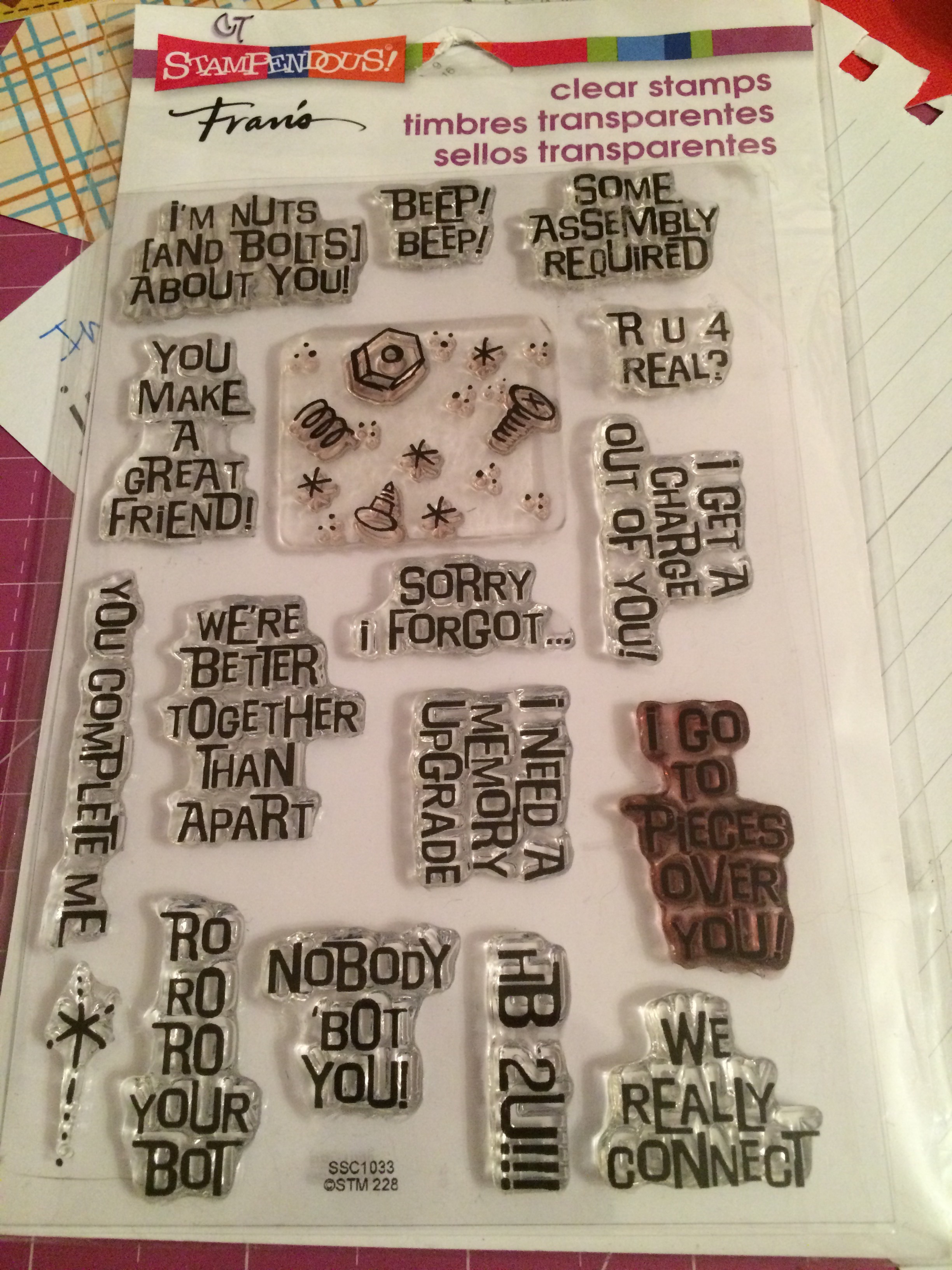 It’s hard to see, but the robot and dog are actually popped up, as is the wonky square sentiment. And the balloon is a puffy sticker from SandyLion (PFOM10). I was thankful I wasn’t mailing the card.