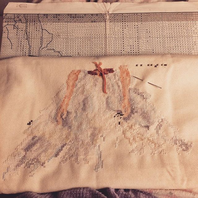 Every now and then I’m able to travel and take my Gone with the Wind cross-stitch with me. Here’s an updated picture of my progress.
