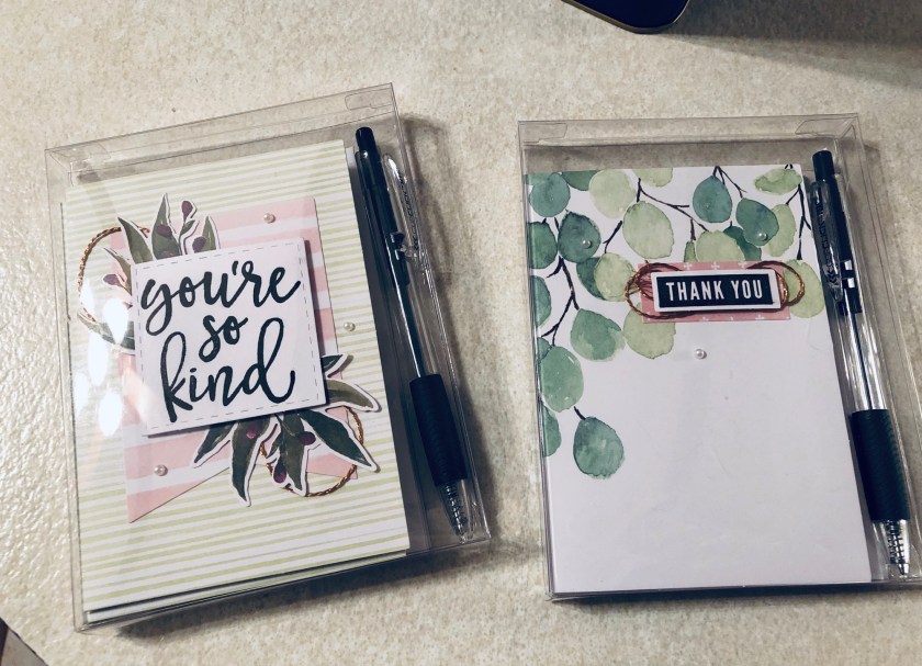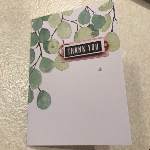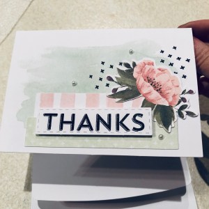 Something then made me think about the Rose Metallic Thread I had stored with my baker’s twine, and I decided to do a bow of some sort. I’m not very good at bows with delicate threads yet. I ended up laying ATG tape on the back of the sentiment and looping it around and sticking to the tape however it looked the best to me.