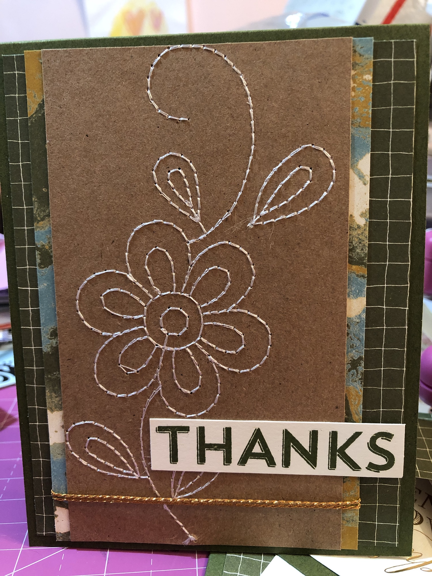 Hello again… I thought I’d pop on while multitasking and detail a couple of simple cards I made recently. I got distracted last week before my husband and I went to Florida for his job (Florida in January from Ohio—huge perk, right? Well, if one stays healthy, yes. 🙂 ). When I should have been packing or finishing a card order, I ended up pulling things together for a card I didn’t anticipate making. Then last night I made another one since the first was so easy and I had a second stitched piece yet to use. 🙂