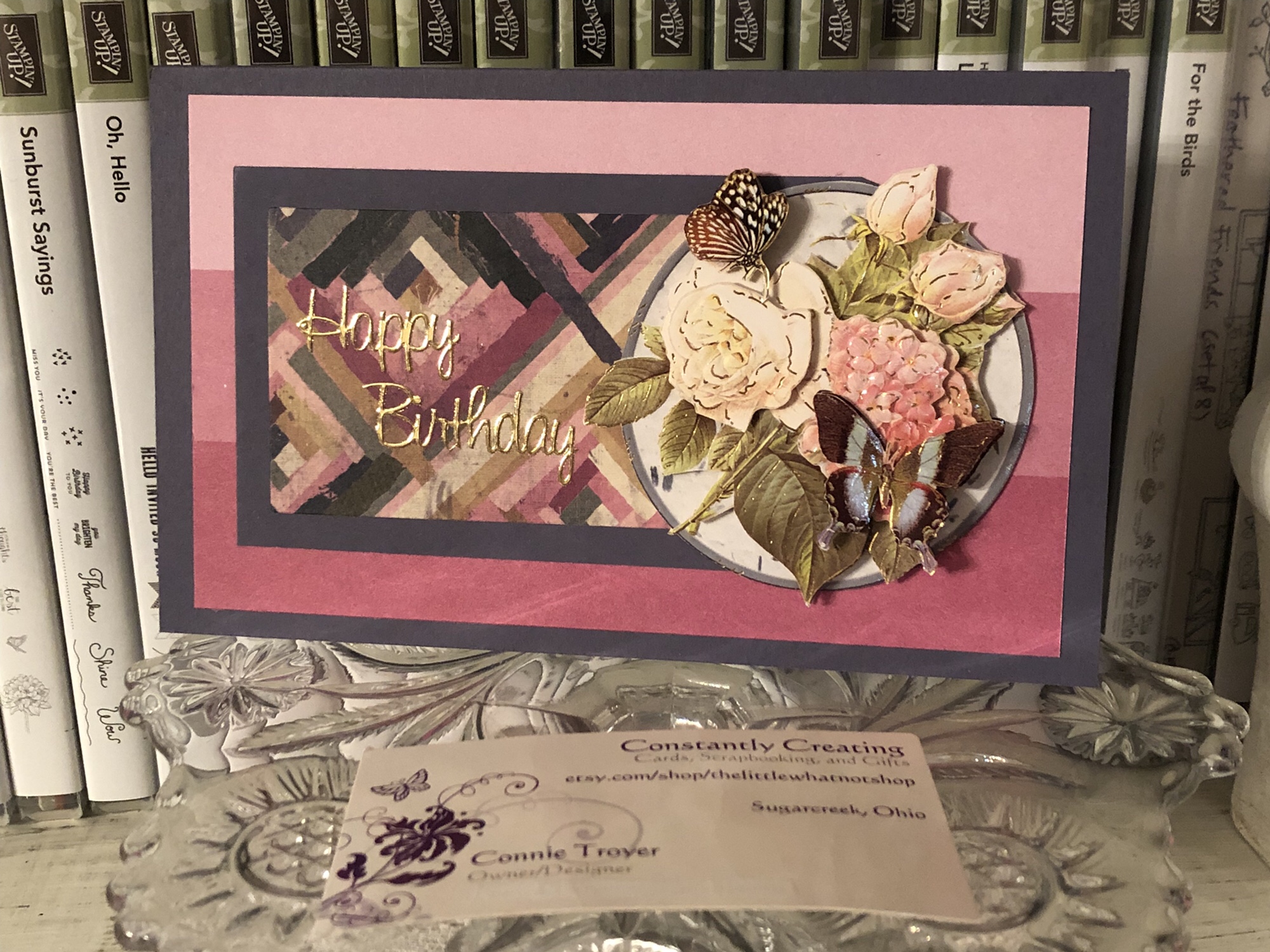 I’m not sure what is going on the inside yet. The card is going to a friend who recently lost his mother. I need to look for the right sentiment before I send it with a delayed memorial gift. It’s been a busy year here. But at least I’m one step closer in getting the card and gift sent out the door.
