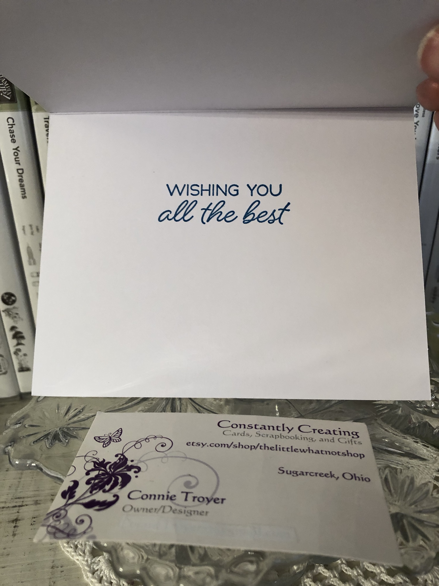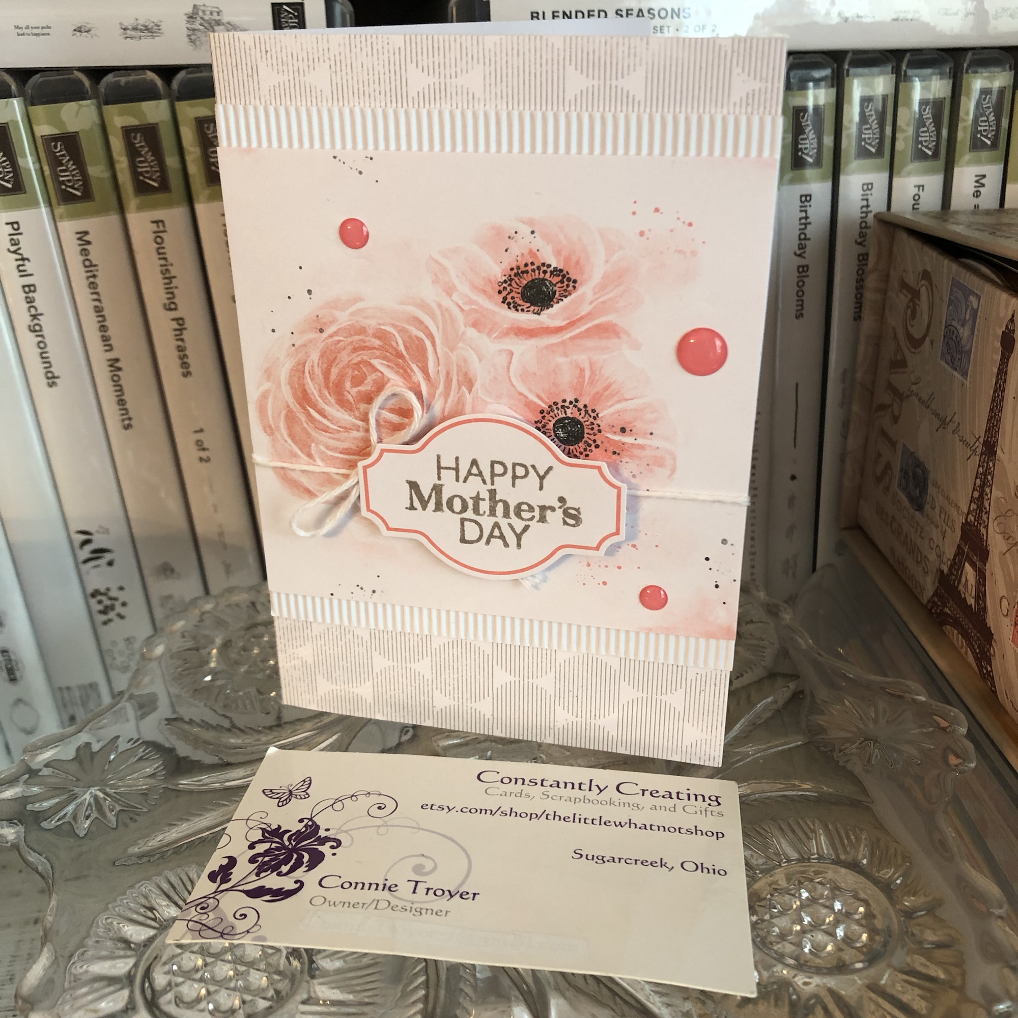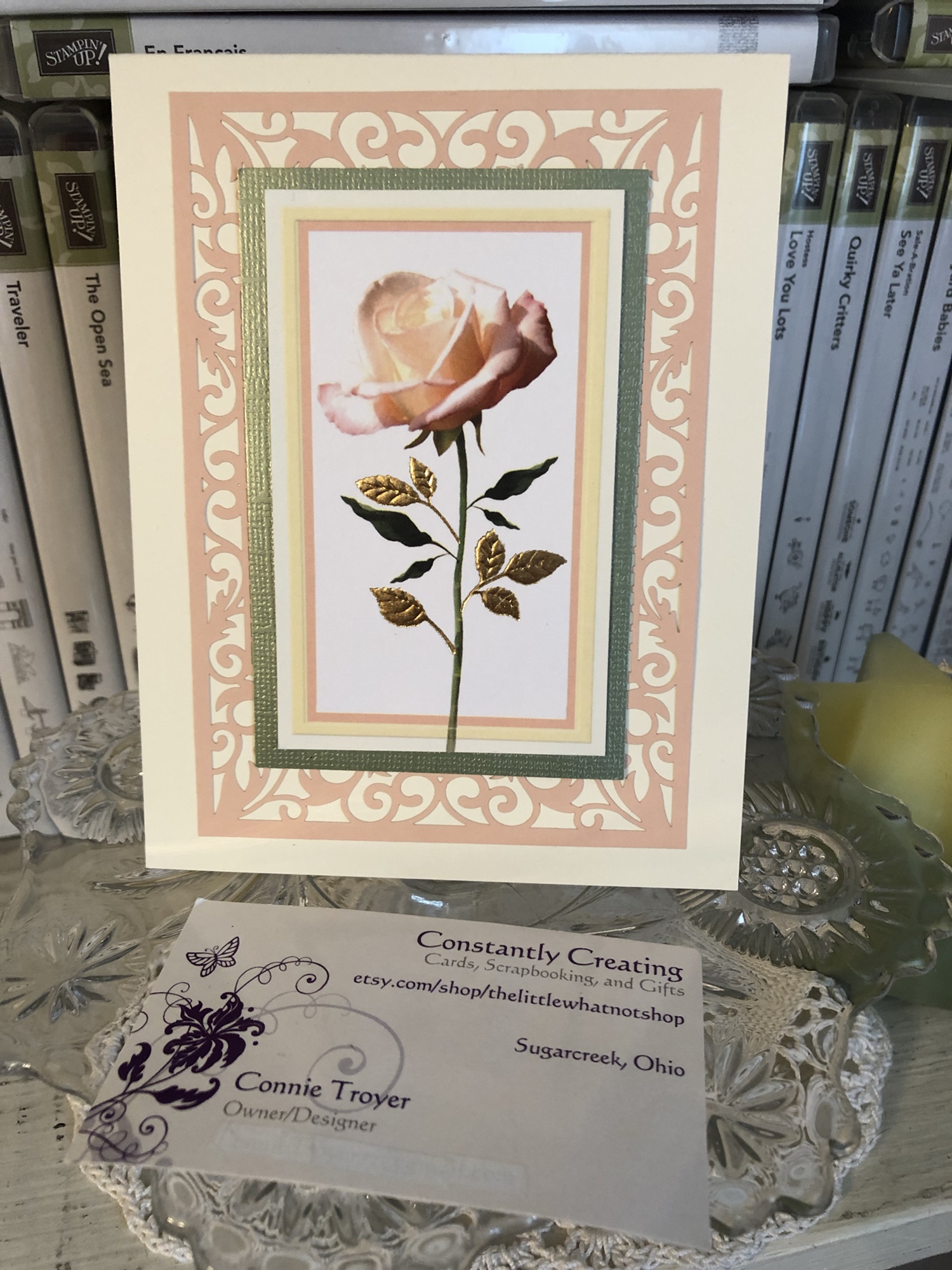 I plan on decorating the inside of the card with a thinner strip of the floral paper and then selling the card to my local gift shop so one of their buyers can encourage a friend or relative too.