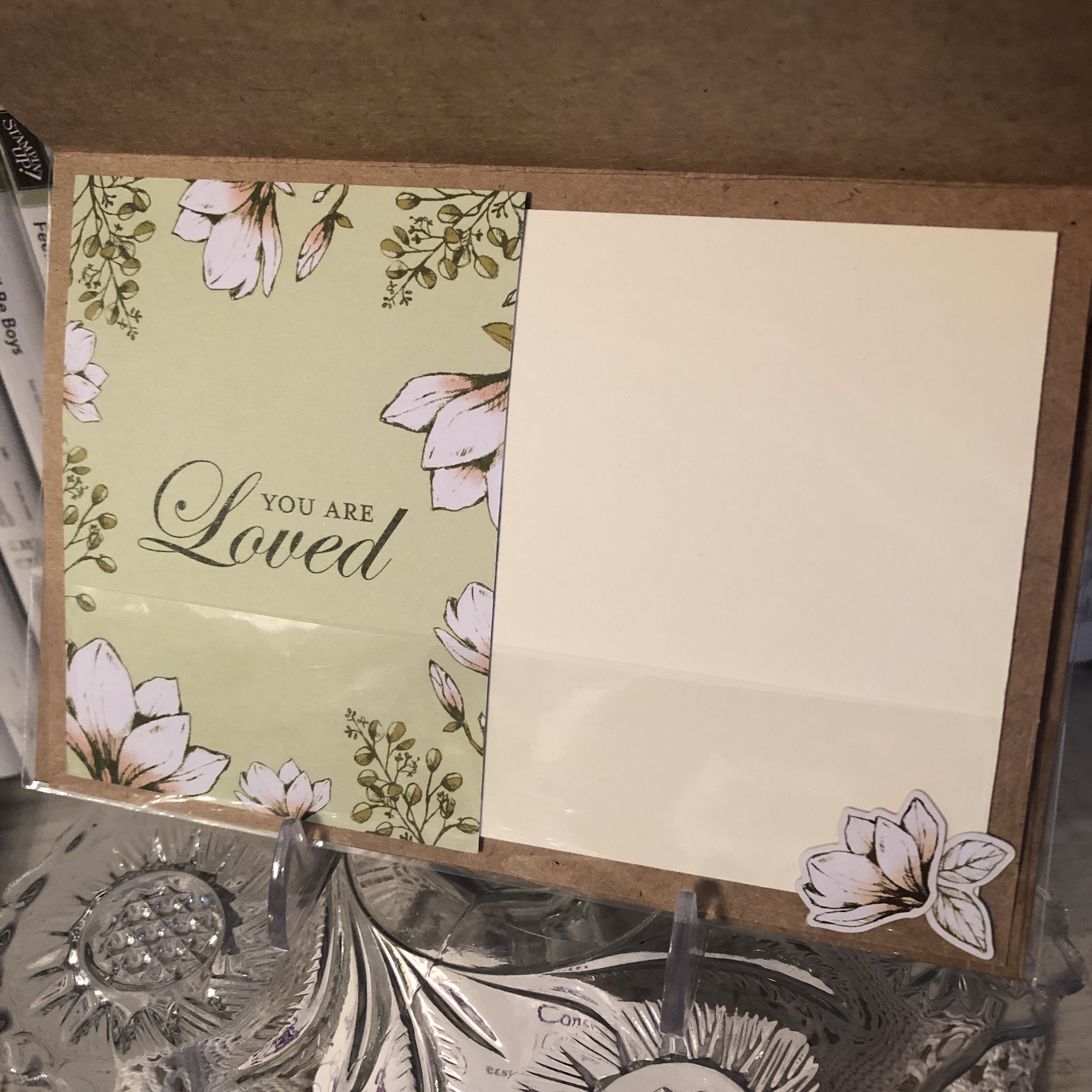 On the inside, I used the “You Are Loved” 3×4 card, some white paper for a message, and a few of the stickers from the sticker sheets included in the Memories and More pack. Easy-peasy!